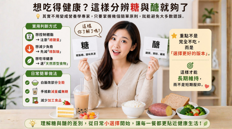 很多人一開始就把「糖」和「醣」混在一起,結果在飲食控制上走了不少冤枉路。其實只要先理解兩者差別,再從日常選擇做一點點調整,就能讓飲食更清楚也更輕鬆。
