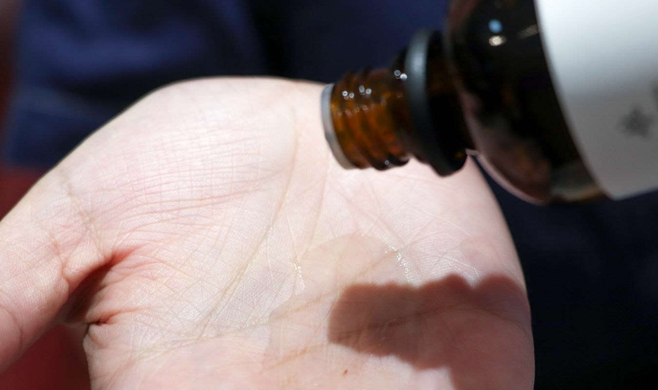 按摩油在試用時,我都會先測試其流動狀態,因為寶寶肌膚很嫩,如果流動性不好,不容易推開,容易在同一部位殘留太多按摩油,好孕寶寶純淨按摩油輕輕倒在手上,馬上就能順著手掌滑落,整體的延展性非常高,使用非常方便。