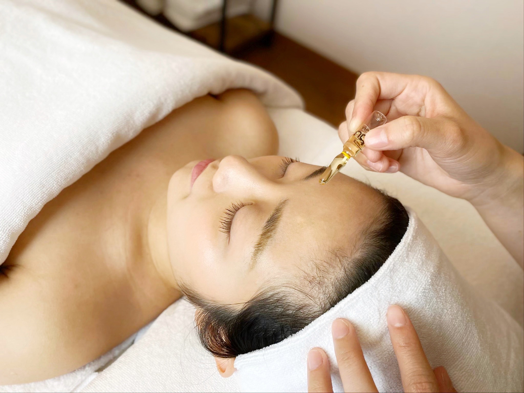 蜂毒課程使用的產品單純、無香精、極致保濕,搭配芳療師純熟的臉部按摩手技,讓皮膚除了更飽水,還有拉提的效果!超級推薦蜂毒!