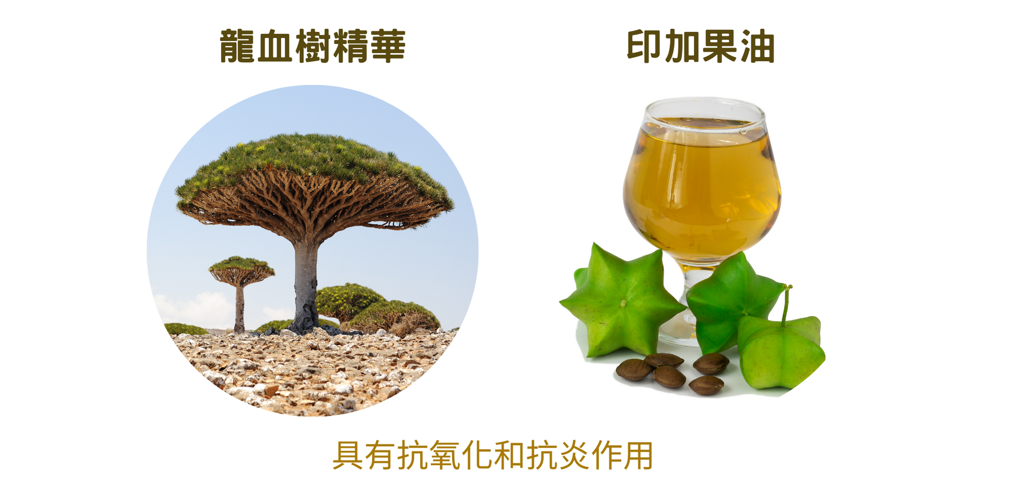 龍血樹樹脂富含多種活性成分,如龍血酸、花青素、單寧酸、三萜類化合物等,這些成分有抗氧化、消炎、抗菌、修護、舒緩等功效,可以幫助改善皮膚問題,保護皮膚健康。