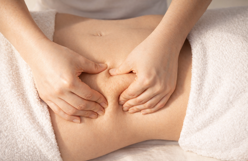 釋放緊繃:先把肚子周圍因為壓力、久坐而變硬的區域揉開。