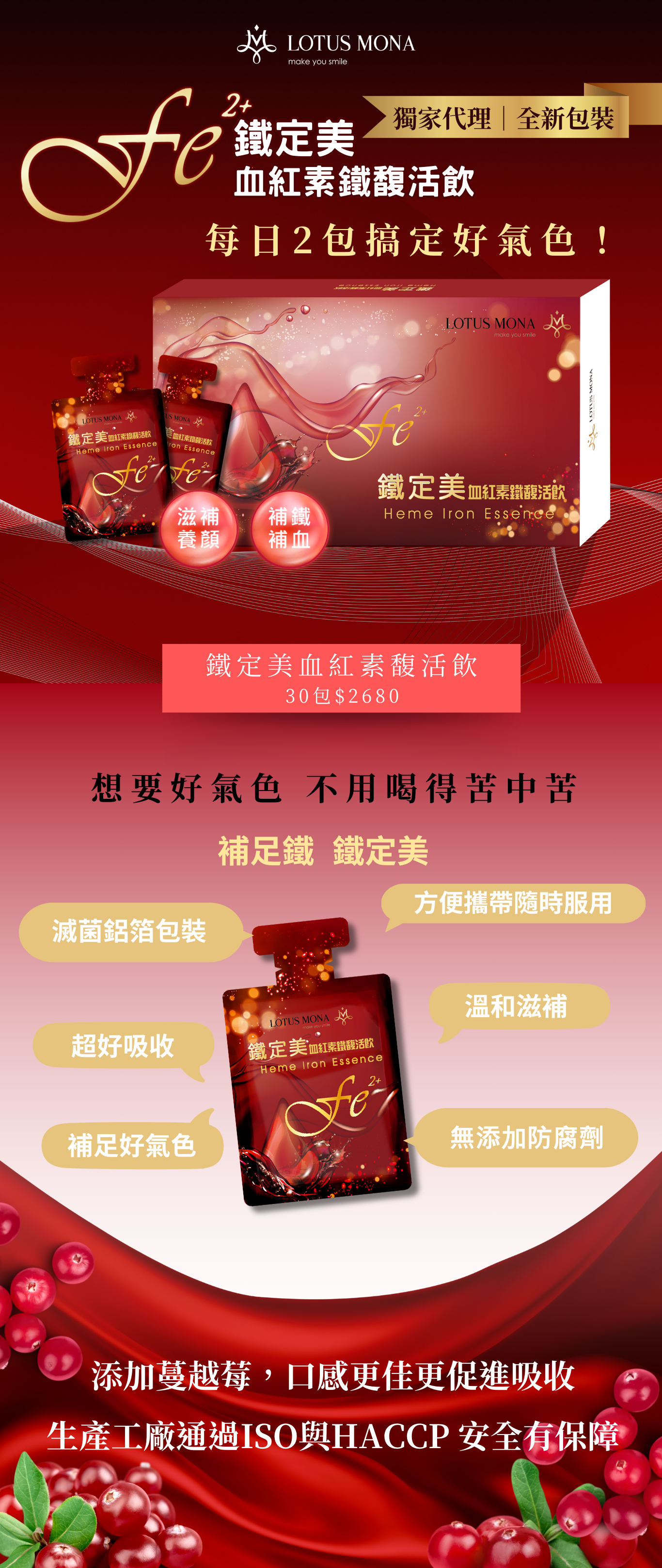 鐵定美血紅素鐵馥活飲3盒 優惠價$5400(定價$8040)