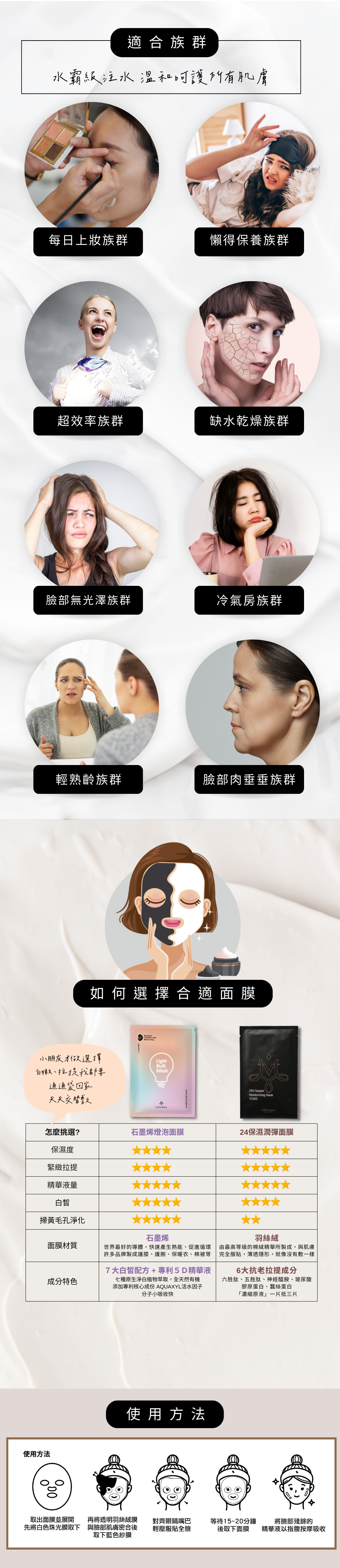 我個人對於面膜著重的就是保濕、亮白,那天去逗spa 發現石墨烯燈泡面膜,身為面膜控直接入手!因為我比較常熬夜,所以就容易出現暗沉,石墨烯燈泡面膜厲害的地方就是敷完後肌膚亮白超有感!我自己是敏感肌,肌膚也是薄薄的~所以我就會選溫和、低刺激性配方的面膜~起床肌膚狀況很差的時候,敷個15分鐘直接做到懶人保養。