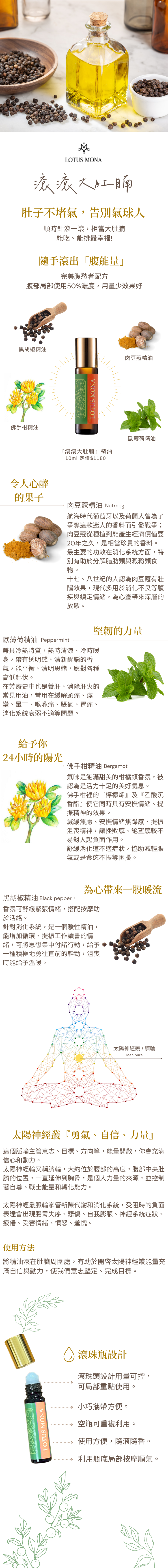 成分: 肉豆蔻、歐薄荷、黑胡椒、佛手柑等精油